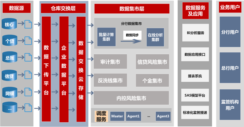 总行已上线SAS模型管理平台、监控标准化数据报送平台、审计智能分析平台、整合风险和数据集市项目、风险数据集市、个金产品组合管理系统配套项目、中银数创平台和信息管理报表系统等十套应用。共13个集群,280个节点,总数据量1530TB。全面支持总行数据分析型场景。