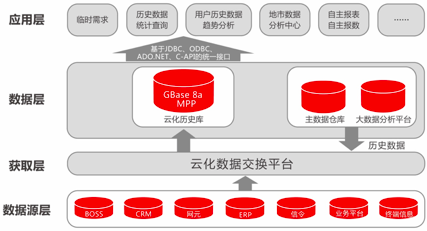 低成本构建云化历史库,吸收合并计费历史库和经分历史库,重构详单基础模型,负责主仓库和大数据分析平台的历史数据存储,满足历史数据挖掘、趋势分析预测等应用。
