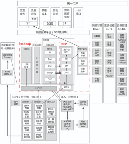 ·业务层面需求:主要为数据中心提供多域的数据模型,为B域、O域和M域等各域的数据实现数据资源池的统一管理,统一调用。本次项目计划增加“多维成本分析”,“流量经营”,和“位置信息服务平台”等三项新增应用,并迁移现有的经分应用,包括“自助分析平台”,“集团一经接口”,“市场运营监控中心”以及其他成熟稳定的数据模型。作为北京移动企业数据中心的接口,其数据容量每日达到17TB/日,其中MPP数据仓库支撑的数据总量达到600TB,每日入库数据达到3TB/日(接口数据与数据仓库入库数据比例关系为6:1);