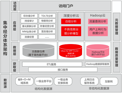 深度分析云是中国移动总部集中经分系统的重要组成部分,负责历史数据存储与深度分析,用于汇集经分主数据仓库、B域、O域、M域数据,以及Hadoop云的互联网分析结果、采样数据,用以支撑各类开放式分析环境,合理分配数据空间、运算资源。